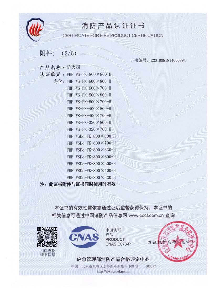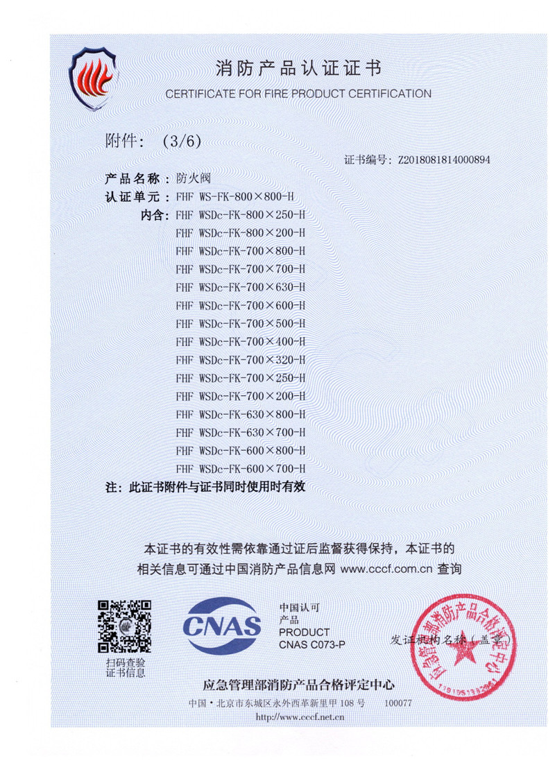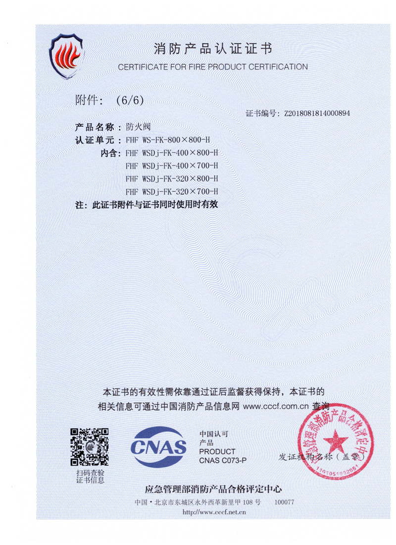 排煙防火閥證書