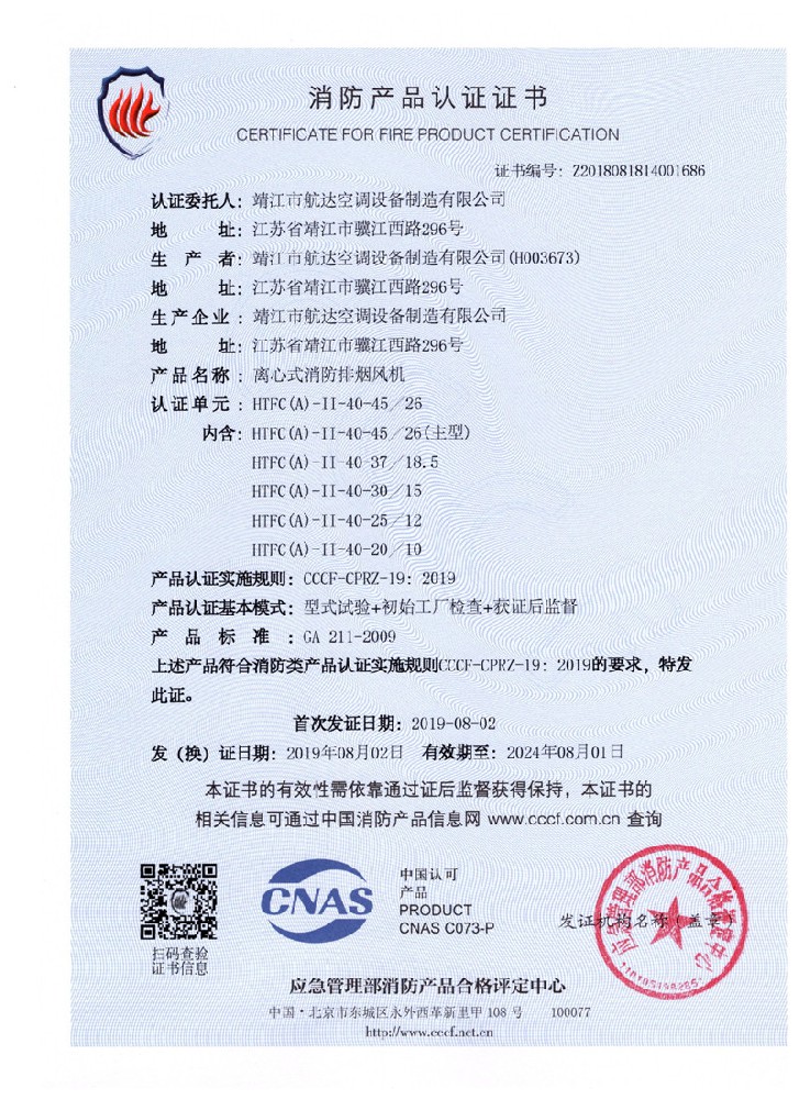 軸流式、離心式風(fēng)機(jī)證書